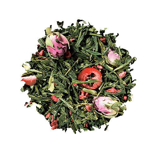 The unique taste of tart cranberry is complemented by delicately sweet raspberry and harmonizes in perfect symphony with our Sencha base. Bright cranberry slices and raspberry pieces, along with gentle floral rosebuds, set the tone in perfect harmony, making the heart of many green tea connoisseurs beat faster.